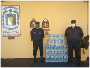 En la mañana de este jueves 16 de abril  personal policial de la Jefatura Departamental Villaguay recibió 40 packs  de Agua Mineral presentación 500 cc los cuales fueron donados por la Embotelladora COCA COLA KOADINA S.A. Las mismas serán destinadas  al personal policial de las distintas dependencias del Departamento Villaguay que se encuentran cumpliendo funciones de control de Seguridad y de Circulación de Vehículos, atento Emergencia Sanitaria Nacional, según DNU297/2020.-