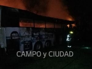 s Tiros sirenas de Policia y Bomberos. Un grupo de malechores incendio un micro fuera de servicio en dicho corralon por lo que se pudo conocer. Esto motivo la presencia de bomberos que una vez que llegaron al lugar no pudieron iniciar el trabajo debido a que desde las afuera del corralon tiraban botellas, Piedras, gomeras. Hasta que la Policia logro alejarlos. Se supo que hay detenidos y se buscan mas responsables de los hechos. Participaron 2 vehiculos de Bomberos Voluntarios de la ciudad. Y jefatura Departamental.