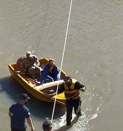 A primera hora de la mañana de hoy, partieron dos dotaciones de bomberos con lancha y equipamiento acuàtico hacia la ex balsa, al llegar se observa una vaca del otro lado del rìo la cual no podìa salir por sus propios medios, personal de bomberos en conjunto con integrantes de prevención delitos rurales utiliza una soga para cinchar la misma y lograr subirla a terreno firme, tarea que se logra aproximadamente luego de 3 hora de trabajo.