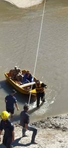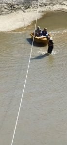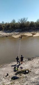 A primera hora de la mañana de hoy, partieron dos dotaciones de bomberos con lancha y equipamiento acuàtico hacia la ex balsa, al llegar se observa una vaca del otro lado del rìo la cual no podìa salir por sus propios medios, personal de bomberos en conjunto con integrantes de prevención delitos rurales utiliza una soga para cinchar la misma y lograr subirla a terreno firme, tarea que se logra aproximadamente luego de 3 hora de trabajo.