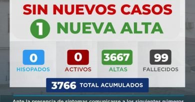 El reporte provincial refleja el total de casos en la ciudad, los mismos ascienden a 20 y corresponden a 16 activos, 2 recuperados y 2 fallecidos.