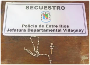 En horas tempranas de este jueves 03 de septiembre personal policial de la Jefatura Departamental Villaguay secuestró un crucifijo y un prendedor de rosas denunciados como sustraídos desde el interior de la Parroquia Santa Rosa de Lima.-