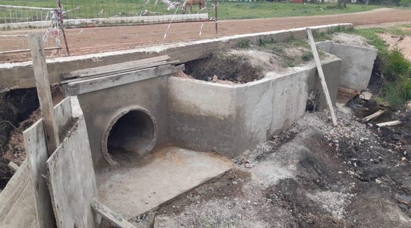 La Municipalidad de Villaguay viene ejecutando un importante trabajo en el Barrio PerpetuoSocorro de nuestra ciudad.Durante estos días, la tarea del Personal de Obras Publicas se centro en la alcantarilla ubicadasobre calle Bernardino Zaburlin donde se le construyen pantallas de contención de hormigón parareforzar ese conducto y facilitar el escurrimiento del agua. Solo restan realizar trabajos externospara &nalizar con esta importante obra, que además, brindara seguridad a quienes transitan poresa arteria