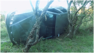 Por razones que se tratan de establecer el conductor de un Fiat Palio de color gris, un joven de 18 años de edad, quien iba acompañado por otros dos jóvenes de 17 y 18 años, pierde el control del rodado motivo por el cual vuelca sobre la calzada Sur de la mencionada calle.-
