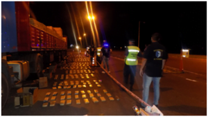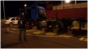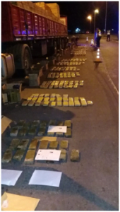 Ante lo acaecido se dio inmediato conocimiento al Juzgado Federal de la ciudad de Concepción del Uruguay y con la invaluable colaboración de la División Toxicología de la jefatura Departamental Villaguay, llevándose a cabo la requisa de urgencia del camión y su semirremolque se hallan la cantidad de 417 panes de marihuana cannabis sativa distribuidos en 17 cajas de cartón arrojando un peso total de 322,405 kg. Dicha sustancia es formalmente secuestrada además del rodado, dinero en efectivo, equipos de telefonía celular disponiéndose la inmediata detención e incomunicación del autor por el supuesto delito de transporte de estupefacientes Ley 23.737. También participó personal de Criminalística, Mecánico y Verificador de la Jefatura Departamental Villaguay