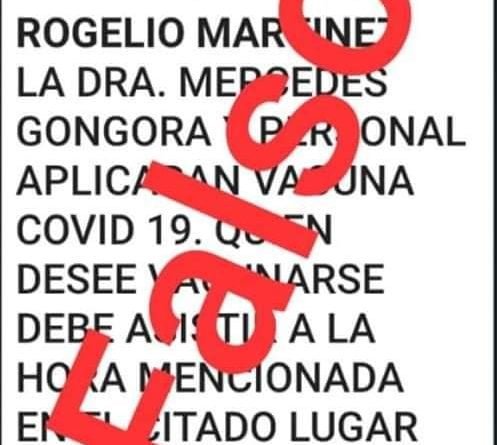 La Dirección de Salud minicipal informa que es falsa la información mal intencionada que circula por WhatsApp, donde se convoca a los ciudadanos a vacunarse en una escuela municipal.