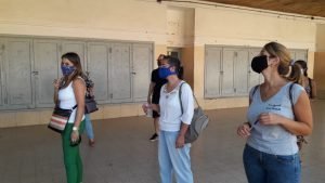 Durante el recorrido se diálogo con personal docente acerca de las condiciones de implementación del protocolo por la pandemia de COVID 19, regreso a la presencialidad, sistema mixto, condiciones de docentes y alumnos para continuar el proceso de enseñanza aprendizaje desde la virtualidad, condiciones edilicias, faltante de cargos que son indispensables en la cotidianeidad de las instituciones, etc.