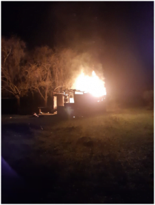 SE LE PRENDIO FUEGO LA CASA Y LA POLICIA LO ENCONTRO SENTADO AFUERA DORMIDO.-