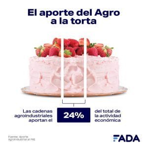 “Las cadenas agro generan 1 de cada 4 pesos que produce el país. El 24% del PBI argentino proviene del campo, son US$ 77.235 millones, es la actividad que mayor aporte genera. Le siguen en importancia: el comercio mayorista y minorista de otros productos (12%), como ropa, calzado, electrodomésticos, la actividad inmobiliaria (11%), salud y educación (11%) y la industria manufacturera de productos como autos, prendas de vestir, maquinarias, etc. (10%)”, agregó David Miazzo, Economista Jefe de FADA.