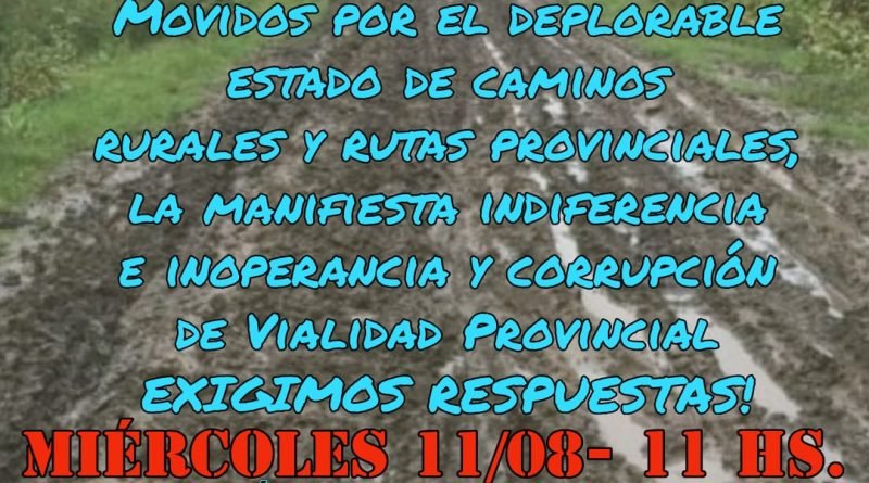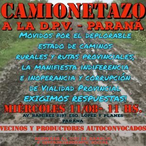 Productores rurales de las zonas aledañas a Paraná se autoconvocaron este miércoles para realizar una caravana hasta la Dirección Provincial de Vialidad, en reclamo por el mal estado de los caminos de la provincia.