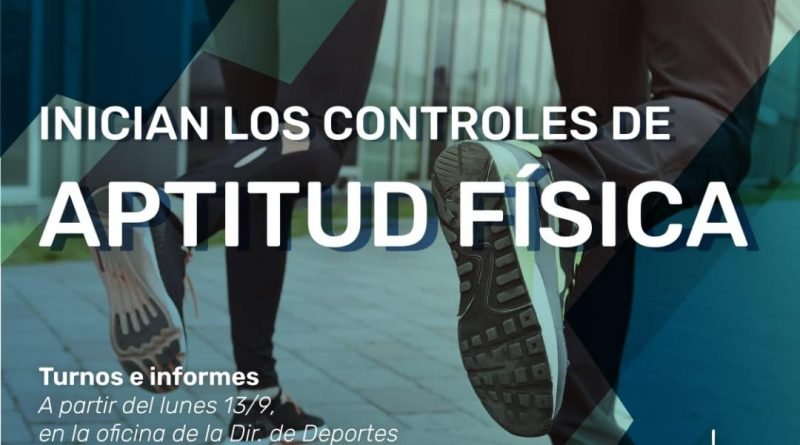 La Dirección Municipal de Deportes informa que a partir del próximo miércoles 15 se inician los Controles de Aptitud Física gratuitos a chicos de la ciudad que NO posean obra social.