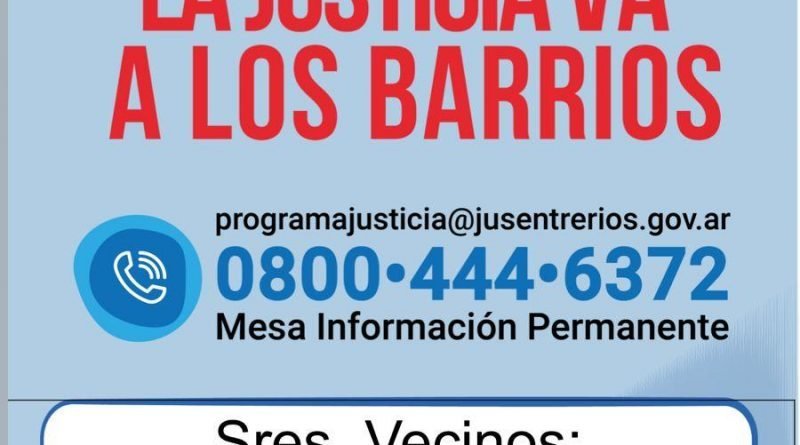 | Programa “La Justicia va a los Barrios” Viernes 24 de septiembre de 9 a 12 hs PARAJE CHAJARI – Escuela N.º 61