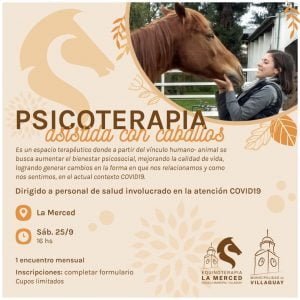 La Municipalidad de Villaguay invita a participar de una nueva actividad gratuita que incorpora la Escuela de Equinoterapia “La Merced”, denominada “Psicoterapia asistida con caballos”, dirigida a personal de Salud involucrado en la atención y contención a pacientes Covid-19.
