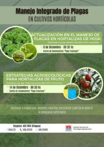 El 6 y 14 de diciembre se realizarán dos disertaciones sobre el manejo integrado de plagas en cultivos hortícolas: “Actualización en el Manejo de Plagas en Hortalizas de Hojas” y “Estrategias Agroecológicas para Hortalizas de Fruto”.