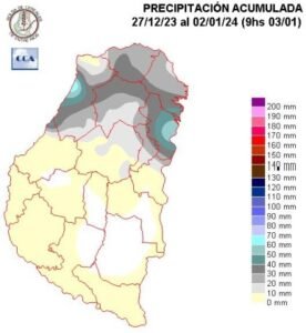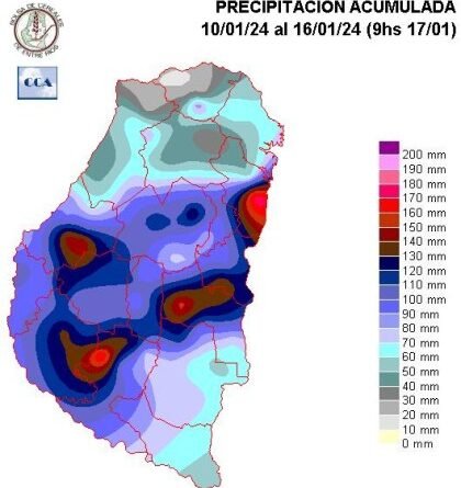 Como podemos ver en el mapa, hay una muy extendida franja del territorio provincial que recibió precipitaciones por encima de los ochenta milímetros. La extensa red de estaciones y los datos de los colaboradores de la BCER, permiten detectar las zonas donde las lluvias fueron más abundantes. Las mismas quedaron contenidas dentro de esta franja con piso de ochenta milímetros. Se destacan varios máximos distribuidos en forma inconexa, con acumulados superiores a los ciento treinta milímetros. También podemos reconocer en el mapa una menor oferta de agua hacia el sudeste y hacia el norte provincial. En el norte ya venía lloviendo en las semanas previas, pero hay zonas de Gualeguaychú que han quedado un poco rezagadas en los acumulados pluviales. En este sentido, el sudeste de la provincia queda algo más necesitado en