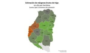 En términos generales, el margen bruto promedio del cultivo de trigo se sitúa alrededor de los 80 dólares por hectárea.Considerando la superficie cultivada total, representa un resultado bruto en el territorio de aproximadamente 50 millones de dólares. Este resultadose obtiene al descontar los costos estimados de la actividad, que rondan los 450 millones de dólares e incluyen gastos en fletes, insumos, labores, cosecha y arrendamientos.Estos datos representan en términos relativos un retorno por dólar gastado del 10%.