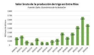 La producción de trigo fue superior a u$s 500M en la campaña 2023/24 en Entre Ríos
