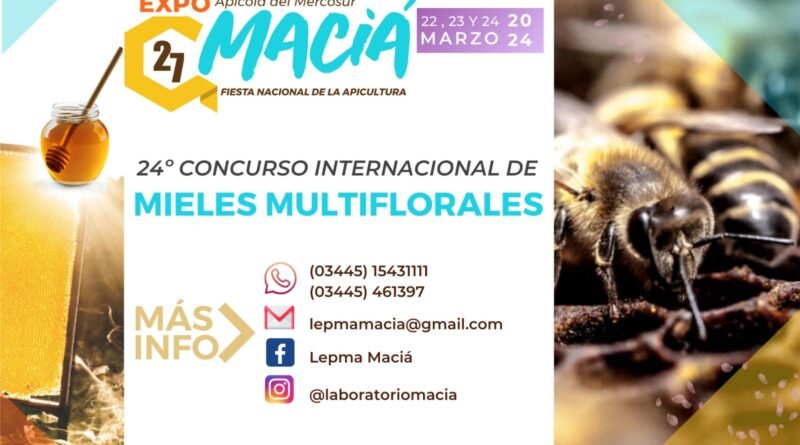 En el marco de la 27° Fiesta Nacional de la Apicultura y Expo Apícola del Mercosur, que se realizará el 22, 23 y 24 de marzo en el Predio Multieventos de Maciá, se realizará el Concurso Internacional de Mieles Multiflorales, el Concurso La Miel en la Cocina y el Concurso de vidrieras para comercios de la ciudad.